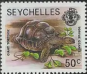 ![]() Гигантская черепаха на почтовой марке Сейшельских Островов, 1977 г. | |