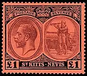 ![]() Почтовая марка Сент-Китса и Невиса номиналом в 1 фунт стерлингов, 1920 (Mi #36) | |