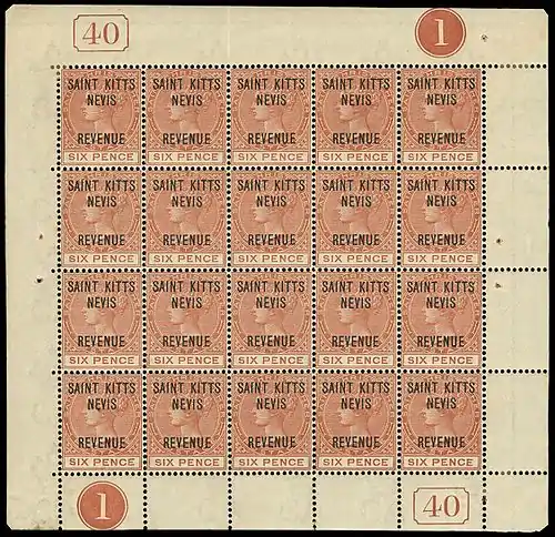 Известны четыре почтово-гербовых марки[8] Сент-Китса и Невиса, когда острова находились под колониальным управлением[4].