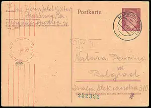 В апреле 1941 года город Марибор (Марбург) и прилегающие районы: южные части Штирии и Каринтии, а также Крайна, были включены в состав Германии. Здесь начала работать германская служебная почта. В начальный период оккупации продолжали использоваться знаки почтовой оплаты Югославии, которые в некоторых отделениях связи гасились специальными штемпелями с надписями типа нем. «Marburg wieder den Deutschen» («Марбург снова немецкий»). Смешанные франкировки немецкими и югославскими марками не допускались. После официальной аннексии территорий с 29 сентября 1941 года в обращение поступили марки Германии. Германская почта отметила аннексию памятной серией из четырёх марок с видами Марибора, Велене (Вельдеса) и Птуя (Петтау), а также горы Триглав, которые гасились специальными штемпелями[1][3].
