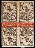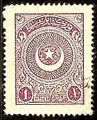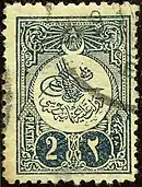 В период с 1901 по 1911 год Турция издавала почтовые марки с аналогичными рисунками с изображением тугры правящего монарха (Sc #102—182). В 1908 году появились первые памятные марки[17] в честь созыва парламента[13] и принятия новой конституции страны 24 июля того же года[24].