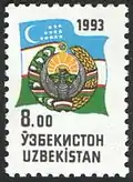 ![]() Первая почтовая марка Узбекистана (1992). Художник Б. Илюхин (Mi #1) | |