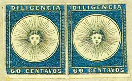 1 октября 1856 года дилижансная компания Лапидо ввела в обращение так называемую марку «Дилижанс». Выпуск предназначался для оплаты перевозимой дилижансами корреспонденции, исключительно внутри страны[10]. Первая серия марок, включавшая три номинала, имела надпись «Diligencia» («Дилижанс», то есть «[пересылка] дилижансом», — отсюда её филателистическое название), и она поступила в продажу в течение в 1856—1857 годов[5][6].