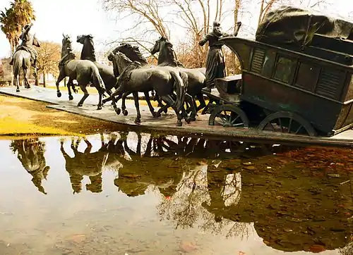 ![]() Вырезка с двумя почтовыми марками Уругвая, первый выпуск «Дилижанс», тип II, 60 сентаво, 1857 (Mi #4) | |