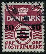 1940: надпечатка нового номинала на марке Дании (Mi #4) |