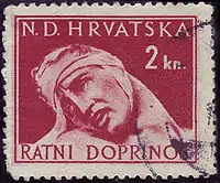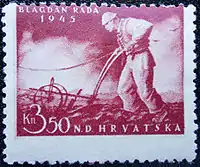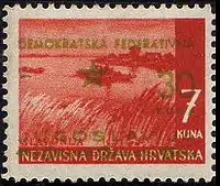 После освобождения Югославии на стандартных марках НГХ в Сплите (в марте 1945) и в Загребе (в июне 1945) были сделаны надпечатки новых номиналов в хорватских кунах и текста «Demokratska Federativna Jugoslavija» (Демократическая Федеративная Югославия). Они использовались в Сплите до 30 июня, в Загребе до 31 октября. В Загребе также надпечатали доплатные марки. С 1945 и по 1991 год в Хорватии в обращении находились знаки почтовой оплаты Югославии[1][4].