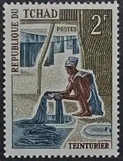 ![]() Марка Чада с изображением красильщицы из серии «Ремёсла», 1970 (Mi #332; Yt #228) | |