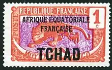 В 1922 году колония получила первые собственные знаки почтовой оплаты — марки французского Среднего Конго с надпечаткой «Tchad» («Чад»). Первая серия включала 18 марок номиналами от 1 сантима до 5 франков[5].