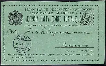 Первые почтовые карточки были выпущены в Черногории в 1887 году; первый маркированный конверт в начале 1893 года[4].