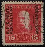 Во время Первой мировой войны, в январе 1916 года, Черногория была оккупирована Австро-Венгрией. Первоначально использовались марки австро-венгерской полевой почты. В марте 1917 года на них была сделана надпечатка нем. «K.U.K. MILIT.-VERWALTUNG MONTENEGRO». В 1918 году на марках полевой почты была сделана надпечатка «Montenegro», однако эти марки не вышли в обращение[1][5].