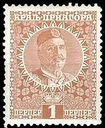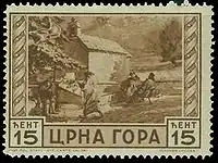 После освобождения Черногории в 1918 году на её территории поступили в обращении марки Сербии, которые в 1921 году заменили марками Королевства сербов, хорватов и словенцев[1].