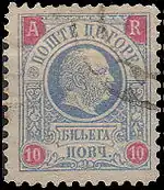 В том же 1873 году в Вене была заказана первая серия из семи почтовых марок Черногории с портретом князя Николы I Петровича. Они поступили в обращение 1 мая 1874 года. Марки этой серии выпускались до 1893 года, выдержав четыре тиража[1][4][5].