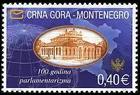Первая серия из четырёх марок современной Черногории была выпущена 15 декабря 2005 года. На миниатюрах были изображены карта Черногории, здание первого парламента Черногории, государственные герб и флаг республики. Марки были отпечатаны в Сараево[10]