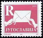 25 июля 2002 года для Черногории, которая с 1 января того же года ввела на своей территории евро, были выпущены специальные почтовые марки. Это были три миниатюры повторяющие рисунки стандартных выпусков Югославии 1993 и 2001 годов с буквенными обозначениями номиналов, но в изменённых цветах. Они предназначались для оплаты внутреннего письма (А), заказного сбора (R) и письма в пределах Европы (E). Несмотря на то, что марки были выпущены для Черногории, они могли использоваться на всей территории Югославии[5][9].