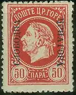 Последние знаки почтовой оплаты Черногории этого периода с портретом короля Николы I Петровича поступили в обращение в апреле 1913 года. Их изъяли после оккупации страны Австро-Венгрией в 1916 году. В том же 1916 году правительством Черногории в эмиграции была подготовлена серия из 19 марок, в том числе с надпечаткой «Слободна Црна Гора» («Свободная Черногория»). Однако в обращение эти марки не поступили[1][5][6].