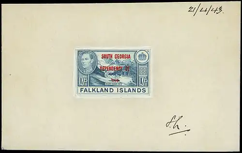 В 1944 году Royal Mail впервые эмитировала серию стандартных марок Фолклендских островов с красными надпечатками для каждой из их зависимых территорий по отдельности — для Земли Грейама, о́строва Южная Георгия[≡], Южных Оркнейских и Южных Шетландских островов[9].