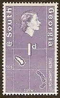 ![]() Первая марка Южной Георгии, 1944 (Sc #3L1)[^] | |