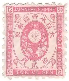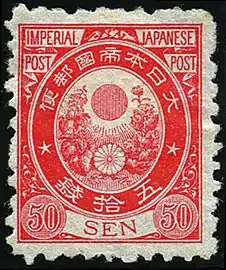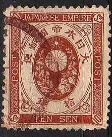 Уже вскоре на смену «драконам» пришла новая серия из четырёх марок с рисунками, запечатлившими эмблему империи — императорскую печать Японии в виде хризантемы. Изображение геральдической хризантемы присутствовало вместо лика императора почти на всех японских почтовых марках начиная с 1872 и по 1947 год[4]. На новых марках номинал был обозначен латиницей; с тех пор эта тенденция, как правило, соблюдалась, хотя и встречаются исключения.
