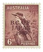 В попытке предотвратить использование продаваемых в австралийских отделениях полевой почты в Японии почтовых марок в таких целях 11 октября 1946 года для полевой почты австралийских оккупационных сил в Японии была эмитирована серия из трёх почтовых марок Австралии выпуска 1942 и 1943 годов с надпечаткой на английском языке текста «B. C. O. F. JAPAN 1946» (сокращённо от англ. «British Commonwealth Occupation Force» — «Оккупационные войска Британского содружества. Япония 1946»). Надпечатки на марках были выполнены в типографии Хиросимы японцами под руководством австралийских военных властей. Но два дня спустя марки изъяли из обращения[4] из-за того, что военные власти не получили разрешения на производство надпечаток[12]. После необходимых согласований, 8 мая 1947 года марки снова поступили в продажу, при этом серию пополнили марки ещё четырёх номиналов[4][12]. В итоге были выпущены марки следующих номиналов: ½, 1, 3 и 6 пенсов, 1, 2 и 5 шиллингов[12]. Все они были изъяты из почтового обращения 28 марта 1949 года[4]. Всего было эмитировано 7 почтовых марок такого типа[8].