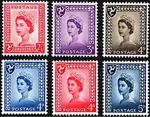 До 1971 года на острове использовались почтовые марки Великобритании. 19 августа 1958 года почта Великобритании выпустила первые региональные марки для острова Мэн. Их дизайн соответствовал таковому на стандартных марках Великобритании того времени. На них был помещён ранний портрет Елизаветы II работы фотографа Дороти Уайлдинг, благодаря чему серия получила известность как серия «Уайлдинг»[2]. Дополнительно на этих марках присутствовала региональная символика острова Мэн.