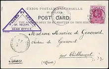История почты острова Св. Елены берёт начало ещё во времена пересылки почтовых отправлений без марок, но до 1815 года на конвертах отправляемых с острова или пересылаемых через него писем не было никаких отметок, которые позволяли бы идентифицировать такие письма[1]. Первое почтовое отделение открылось на острове в 1815 году, и вскоре после этого там стали употреблять ручной резиновый штемпель[1].