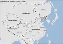 В середине XIV века по всей стране начались антимонгольские восстания. В 1360-х годах повстанцы под командованием Чжу Юаньчжана взяли под контроль основную часть долины Янцзы, и в 1368 году была провозглашена империя Мин. Когда войска Чжу Юаньчжана взяли Цзянся, у него родился шестой сын — Чжу Чжэнь, поэтому после основания империи Мин, когда Чжу Чжэнь вырос — Чжу Юаньчжан дал ему титул «Чуского князя» (楚王), что дало толчок развитию Цзянся, ставшего центром княжеского удела. Уезд Цзянся стал местом пребывания властей Учанской управы, хотя сам уезд Учан находился ниже по течению Янцзы. Из-за этого дуализма место размещения властей управы стали называть «шан Учан» (上武昌, «верхний Учан»), а уезд Учан — «ся Учан» (下武昌, «нижний Учан»). Также в «верхнем Учане» разместился аппарат Хугуанского бучжэнши (чиновника, управляющего провинцией Хугуан).