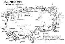 «Усолье прилегает к самой Волге, но с почтовой дороги реки ещё не видно. Отсюда идет крутой выгиб Волги, известный под названием Самарской Луки. Если луку эту огибать по самой реке, то путь этот составит верст полтораста, а потому небольшие суда, идущия снизу, разгружаются иногда у деревни ″Переволоки″ и отсюда, сухим путём, волоком, через село Рязань, доставляют товар к устью реки Усы, к селу ″Жигулёвой Трубе″; тут хозяева снова грузятся на суда. Этим же путём следуют и простые пловцы, выгадывая таким образом больше ста верст: вместо полутораста они делают только тридцать пять вёрст».