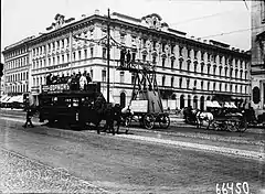 В 1880 году в городе прошли первые испытания электрического вагона изобретённого Фёдором Пироцким, прототипа трамвая. Владельцы конок препятствовали развитию нового транспорта, и в 1895 году электрический трамвай был запущен по льду Невы, поскольку закон ограждал коночников от конкуренции на улицах города. Шпалы, рельсы и столбы для контактной сети врезались прямо в лёд.