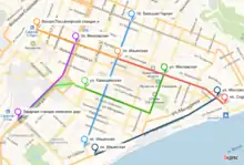 - II. Московская: по Московской улице от пассажирского вокзала до Казанского взвоза, по Казанскому взвозу и параллельно Затонской улице по берегу Волги до перевозной пристани в Покровскую слободу.
