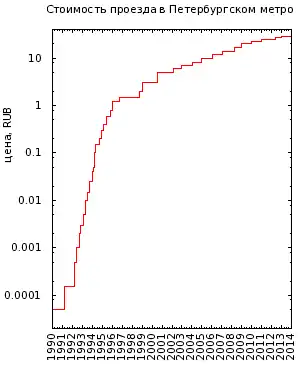 График изменения стоимости проезда (логарифмический масштаб)