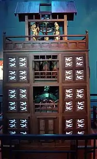 Водяные часы — известный со времён ассиро-вавилонян и древнего Египта[3] прибор для измерения промежутков времени в виде цилиндрического сосуда с истекающей струёй воды. Был в употреблении до XVII века.