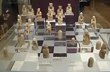 Шахматы были популярны у викингов, сыгравших важную роль в распространении их по Европе вплоть до Исландии. Шахматы часто упоминаются в сагах, так, свод XIII века «Круг Земной» повествует о том, как Кнуд Великий приказал убить ярла Ульфа после ссоры за партией в шахматы[52]. С викингами связан, вероятно, самый известный шахматный комплект Средневековья — шахматные фигуры, обнаруженные в 1831 году на острове Льюис (Внешние Гебридские острова, Шотландия)[53]. Точное место и время создания 78 вырезанных из моржового бивня и китового зуба фигур неизвестно, но по наиболее распространённой гипотезе они могли быть изготовлены в Тронхейме во 2-й пол. XII века[54].