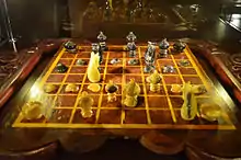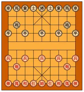 Наибольшие изменения чатуранга претерпела, распространяясь из Индии на восток, где в результате возникли несколько игр, сильно отличавшихся и друг от друга, и от современных шахмат. Торговые пути через Лех, Кашмир и Каракорумский перевал издревле связывали Индию и Китай, что объясняет раннее знакомство Китая с игрой[29]. Китайские шахматы сянци впервые упоминаются у Ню Сэнжу в сборнике «Сюань гуай лу» («Очерки о чудесах из мира тьмы», 1-я пол. IX в., династия Тан)[30]. В сянци фигуры двигаются не по полям, а по линиям и ставятся на точки пересечения линий («пункты»), всего доска из 9 вертикальных и 10 горизонтальных линий содержит 90 пунктов. Ходы фигур тоже отличаются, в сянци также существует дополнительная фигура «пушка», которая ходит как ладья, но может бить фигуру противника, только если между ней и этой фигурой стоит ещё одна фигура, через которую пушка «перепрыгивает». Центр доски для сянци пересекает «река», которая влияет на ходы некоторых фигур. Мэррей прослеживает характерные особенности сянци (передвижение фигур по «пунктам», появление пушки) уже к концу XIII века[31]. От сянци, в свою очередь, произошла корейская игра чанги, которая в основных деталях совпадает с сянци (одно из отличий, например — отсутствие разделительной «реки»)[32].