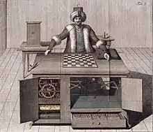 В 1770 году Вольфганг фон Кемпелен в Вене впервые представил «шахматный автоматон» — фигуру турка, игравшую в шахматы будто бы без помощи человека (на самом деле в устройстве мог разместиться живой игрок, реально и управлявший им). С Кемпеленом, а после его смерти в 1804 году — с новым владельцем Иоганном Мельцелем «турок» успешно гастролировал в Европе и США до 1830-х годов[117].