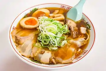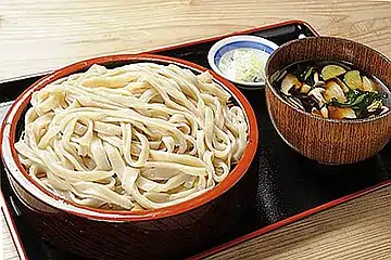 Ещё один продукт, попавший в Японию из Китая — лапша[43]. Это произошло в VIII столетии, скорее всего, первым в Японию попал сомэн, тогда называемый сакубэй[43]. Сомэн — относительно сложная в производстве лапша, вероятно, её делали специалисты или умелые крестьяне[59]. Сомэн до сих пор ассоциируется с летом и жарой, его подают с ледяной водой и соевым соусом, с васаби, маринованным имбирём и зелёным луком[59].