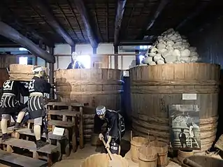 В V веке кореец, названный в хронике Сусукори, подал к императорскому столу алкогольный напиток, приготовленный с помощью плесневого грибка, живущего на рисе, кодзи, однако нет причин считать, что до него ферментация риса этим грибком была неизвестна[30]. В Китае её использовали задолго до того, как рис попал в Японию, и скорее всего кодзи попал на Японские острова в то же время, что и рис[30]. Японское производство алкогольных напитков отличается от китайского и корейского тем, что для него используется только рис; другие злаки и кодзи, растущий на пшенице, в нём не применяют[31].