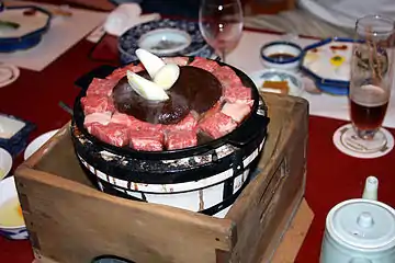 Буддийские запреты на употребление мяса известны в Китае и Корее, но они соблюдались не очень строго и в основном касались монахов[48]. В Японии первый законодательный запрет такого рода выпустил Император Тэмму в 675 году, и он не распространялся на самые популярные виды мяса: кабанов и оленей[49][50]. Мясо собак, обезьян, кур и крупного скота вроде коров и лошадей в это время почти не использовалось в пищу[51].