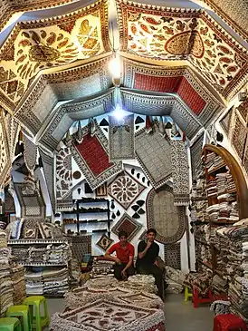![]() Магазин традиционных салфеток с ручной печатью (ханамкари) на большом базаре Исфахана, Иран, апрель 2007 года. | |