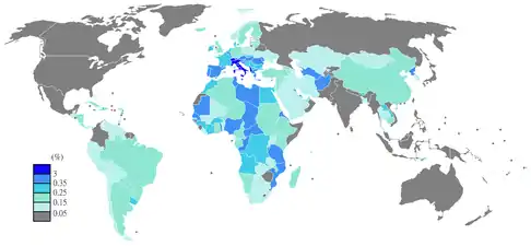Процент посещаемости итальянского раздела по странам (2011 год)