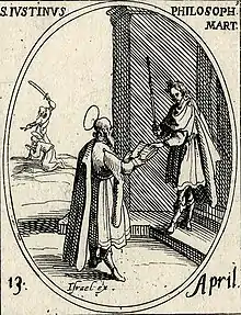 Гравюра Св. Иустина Философа в книге Андре Теве «Les Vrais Pourtraits et Vies Hommes Illustres», 1584.