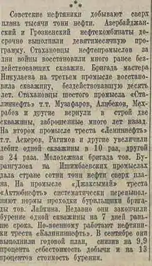 «Больше нефти фронту!» — основана в 1942 году, издание газеты «Башкирская вышка».
