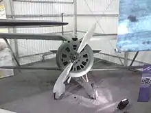 - Силовая установка — поршневой девятицилиндровый двигатель воздушного охлаждения, мощностью на взлетном режиме 1000 л.с. Двигатель был снабжен двухскоростным нагнетателем для повышения мощности на высоте. Воздушный винт постоянного шага диаметром 2,8 м. Двигатель закрыт капотом, в котором имелось восемь отверстий для выхлопных патрубков. Для охлаждения двигателя в лобной части располагались специальные жалюзи.