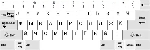 Русские буквы и дополнительные символы доступны по одновременному нажатию и удержанию клавиши AltGr (правый Alt) и соответствующей буквы. Эта раскладка также подходит для туркменского и калмыцкого.