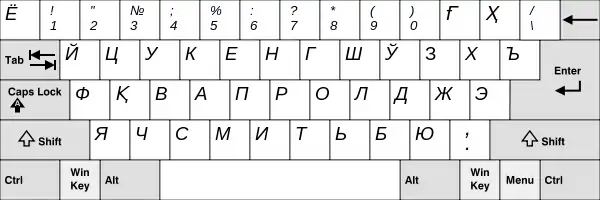 В большинстве современных операционных систем для русского языка по умолчанию используется следующая раскладка: