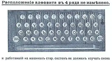 Раскладку придумали в США в конце XIX века (в России производство собственных пишущих машинок было налажено только к 1930-м годам). Конструкция печатающего узла была достаточно отработанной, и важнейшие буквы расположили под указательными пальцами — в отличие от QWERTY. В то время раскладка официально называлась «стандард-клавиатура»[1]. Буквы Ц и Э размещались среди цифр, а цифры 0, 1 и 3 вообще отсутствовали, так как считалось, что их можно было заменить буквами О, І и З[1].