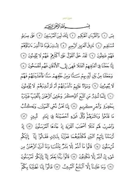 Йа. Син. Клянусь мудрым Кораном! Воистину, ты - один из посланников О Мухаммад! на прямом пути. Он ниспослан Могущественным, Милосердным, чтобы ты предостерёг людей, отцов которых никто не предостерёг, из-за чего они оставались беспечными невеждами. Относительно большинства из них сбылось Слово, и они не уверуют. Воистину, Мы наложили на их шеи оковы до самого подбородка, и их головы задраны. Мы установили преграду перед ними и преграду позади них и накрыли их покрывалом, и они не видят. Им всё равно, предостерёг ты их или не предостерёг. Они не веруют. Ты можешь предостеречь только того, кто последовал за Напоминанием и устрашился Милостивого, не видя Его воочию. Обрадуй его вестью о прощении и щедрой награде. Воистину, Мы оживляем мёртвых и записываем то, что они совершили, и то, что они оставили после себя. Всякую вещь Мы подсчитали в ясном руководстве (Хранимой скрижали).