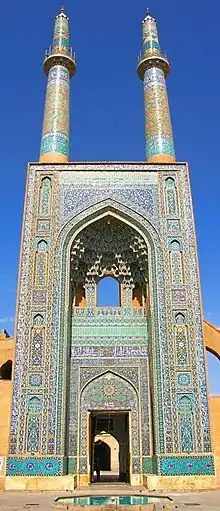 Эта мечеть с двумя высокими минаретами — уникальное сооружение. Минареты — самые высокие в Персии.