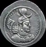 ![]() Изображение Йездигерда I на серебряной драхме | |