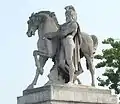Въезды на мост украшают скульптуры четырёх воинов — римского, галльского, греческого и арабского, которые держат своих коней под уздцы. Они были установлены в 1853 году. Авторами скульптур выступили: Луи-Жозеф Дома, Огюст Прео, Жан-Жак Фешер и Франсуа Дево.