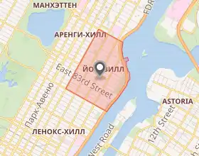 Йо́рквилл (англ. Yorkville) — квартал в верхнем Ист-Сайде в боро Манхэттен, Нью-Йорк. Йорквилл ограничивается 72-й и 96-й улицами,[1] Центральным парком и проливом Ист-Ривер.[2] На юге квартал граничит с районом Ленокс-Хилл, на севере — с районом Карнеги-Хилл. Йорквилл находится под юрисдикцией 8-го общественного совета Манхэттена[3].